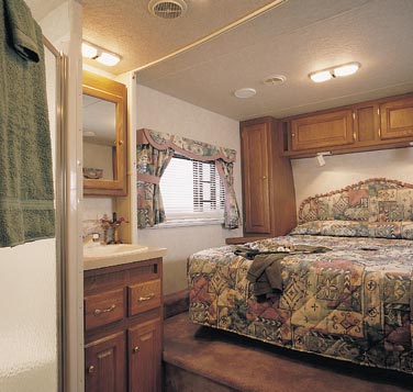 HitchHiker II bedrooms are not an afterthought. The "S" Series offers queen-sized beds, wide shirt closets, large windows, roomy showers, and convenient reading lights. |