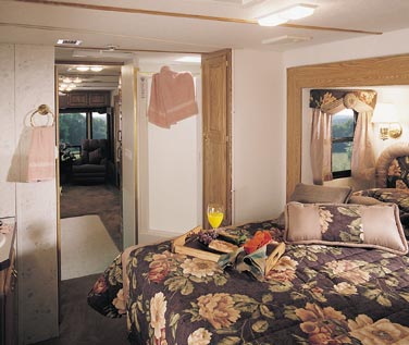 33 RLBWTG Brandywine Decor The roomy Garden tubshower, queen headboard package and side windows in the glide are distinctive features of this elegant bedroom. |