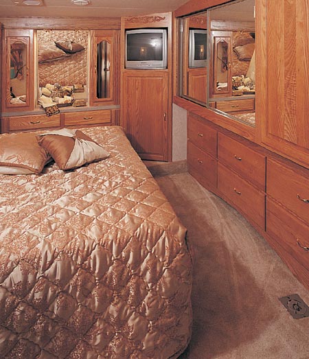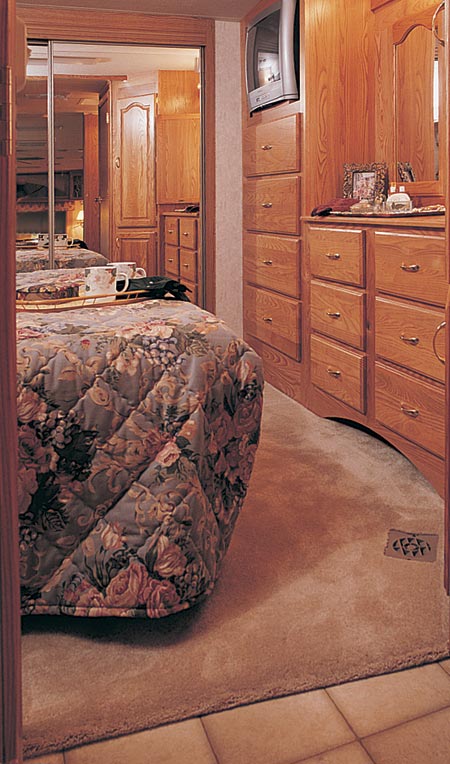 35 RLTG Beautiful yet functional bedroom arrangement with many drawers for storage and a place for an optional 20" TV. One level bedroom bath for easy movement through this area. |